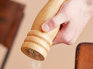 Freshly ground salt or pepper offers a superior taste compared to pre-ground options. Hold the mill in one hand several inches above the food that you wish to season, and twist with the other hand to grind the peppercorns or salt. As you are twisting the salt / pepper mill, the ground pepper or salt will fall from the bottom of the mill onto the food below.