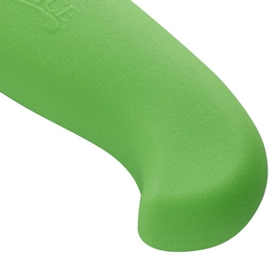 Designed to provide user control when deboning and portioning delicate meats, this knife features a narrow, semi-stiff blade and an ergonomic handle. This handle not only provides user comfort, it allows for a secure grip while navigating the blade around bone and cartilage. Plus, because it's neon green, the handle is well-suited for pre-existing or newly established color-coding systems to prevent cross-contamination.