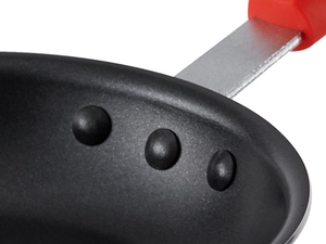 Ideal for making low acidic foods such as mushrooms, broccoli, and cauliflower, this item features gently sloped sides that are perfect for turning, flipping, and removing delicious vegetable medleys from your pan. Its aluminum construction is also built for dependable use yet provides your kitchen with a lightweight, economical option that won't break the budget. Plus, its PTFE non-stick coating offers advanced release properties for healthier cooking and easier cleanup, while its red silicone handle supplies a comfortable grip that's heat-resistant up to 450 degrees Fahrenheit!