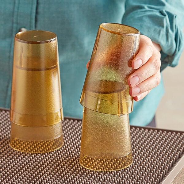 Made of sturdy plastic, this tumbler is designed for long-lasting use in your establishment. Thanks to its sturdy design, this tumbler balances on counters, tabletops, and trays so you don't have to worry about slips and spills.