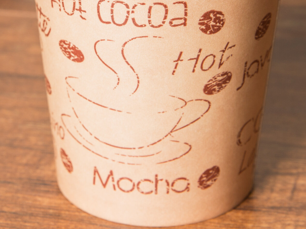 Both versatile and economical, this Choice hot coffee cup is the perfect beverage solution for your cafe, coffee shop, kiosk, concession stand, or convenience store. It features an attractive cafe design that provides a colorful alternative to plain white paper cups, and has a space-saving construction, allowing it to be placed in a convenient cup dispenser for compact storage and easy accessibility.