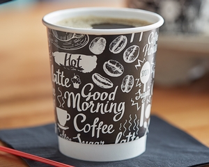 From hot cocoa and coffee to tea and warm cider, this Choice cup is an economical option for your cafe, coffee shop, kiosk, or concession stand. It features a contrasting black and white design decorated with coffee lingo, creative graphics, and coffee beans to make your signature brews look their best!