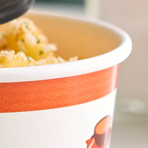 This Choice paper hot food cup features a tightly-rolled rim, ideal for ensuring a safe, secure lid fit. It is smooth to the touch, making it great for sipping, too. When the lid is in place, this rim works to prevent spills thanks to the tight lid fit, while also eliminating the risk of rapid heat loss.