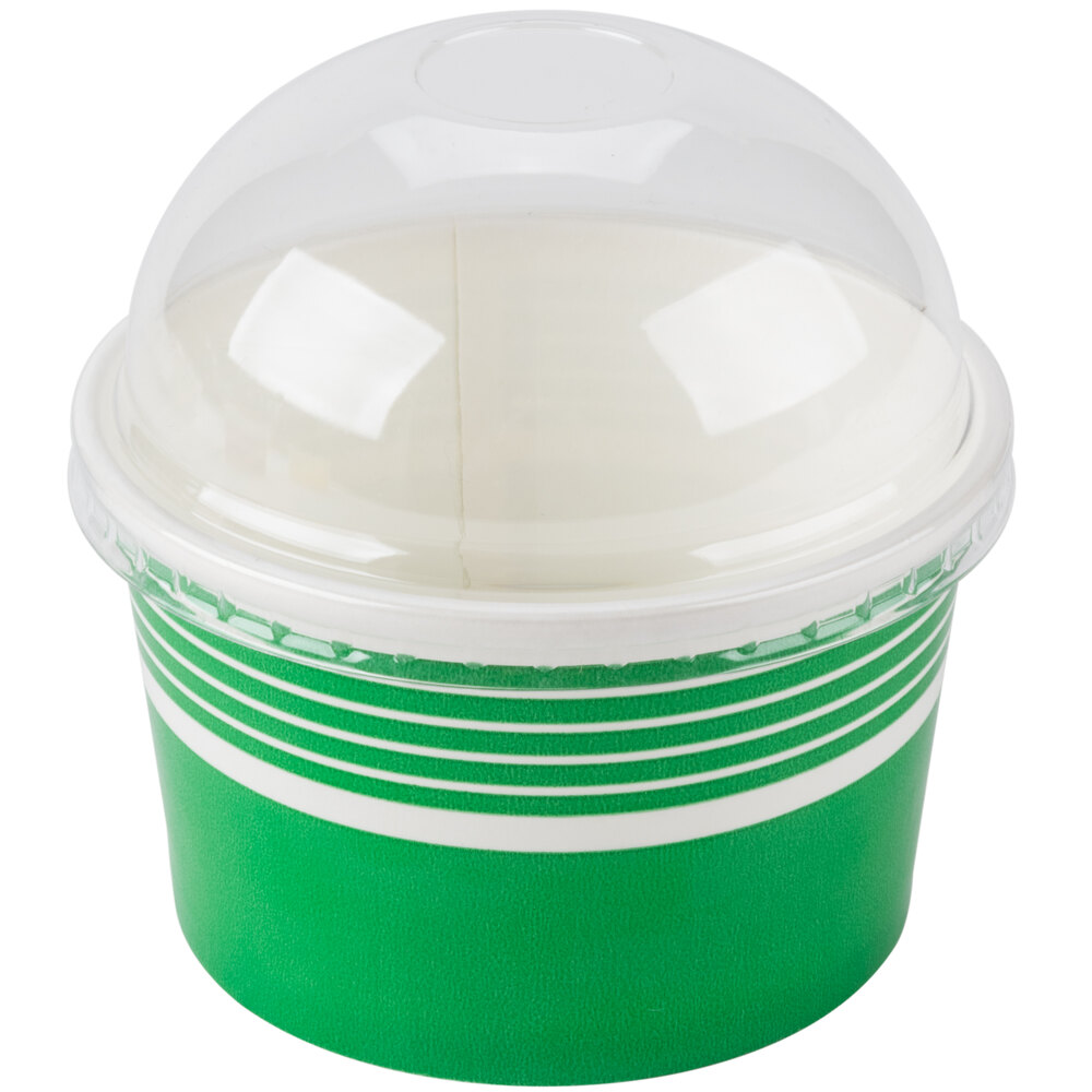 Designed for ice cream shops, concession stands, diners, restaurants, and bakeries, this versatile cup is perfect for serving take-out ice cream, frozen yogurt, and other menu favorites. Its eye-catching bright green color scheme helps add a pop of personality to any setting, while the 8 oz. capacity allows users to pile on toppings or add an extra scoop of their favorite flavor with incredible ease.