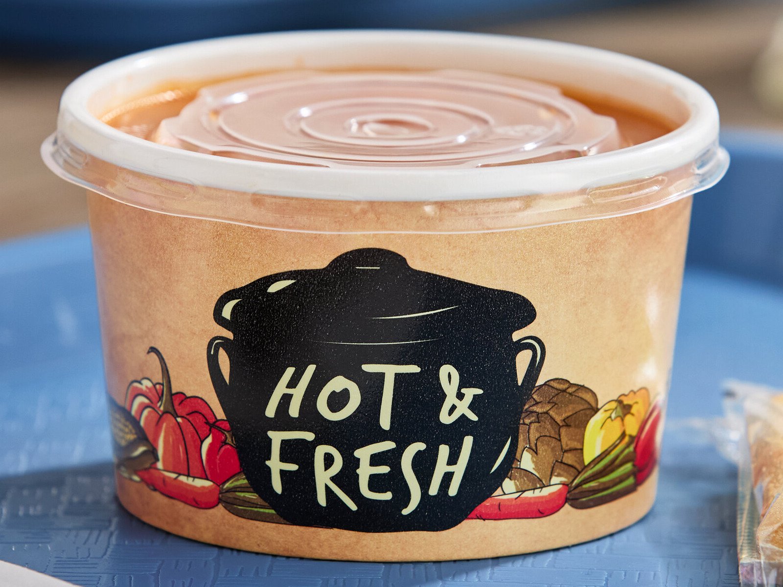 Perfect for delis, markets, and salad bars, use this convenient container and lid to serve anything from signature soups and stews to your most popular hot sides and steamed veggies. It's even suitable for cold foods like ice cream, yogurt, and sorbet. Its size makes it great for single servings, while the classic round shape ensures that it's easy to hold and carry while on the go.