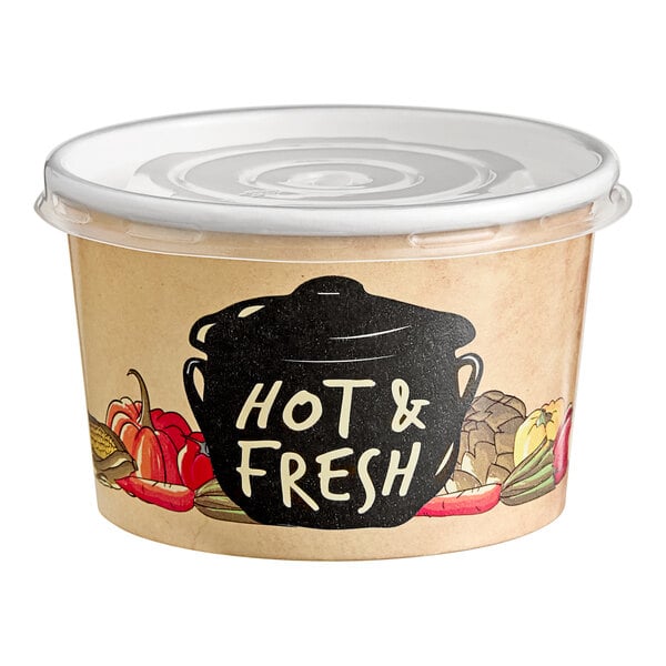 Choice 8 oz. Medley Double Poly-Coated Paper Soup / Hot Food Cup with Vented Plastic Lid - 250/Case