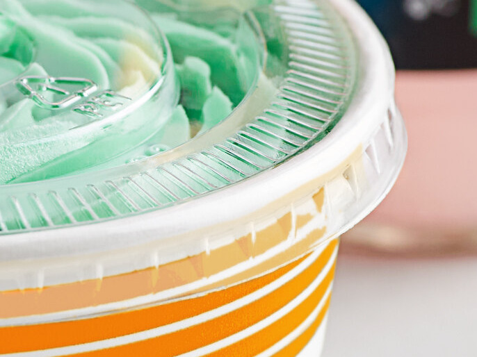 In addition to serving ice cream and frozen yogurt, this cup with lid is also perfect for serving hot foods! Serve your guests small soups or even side dishes like mashed potatoes and macaroni and cheese. No matter what you choose to use it for, this versatile cup with flat lid will instantly enhance your serving capabilities.