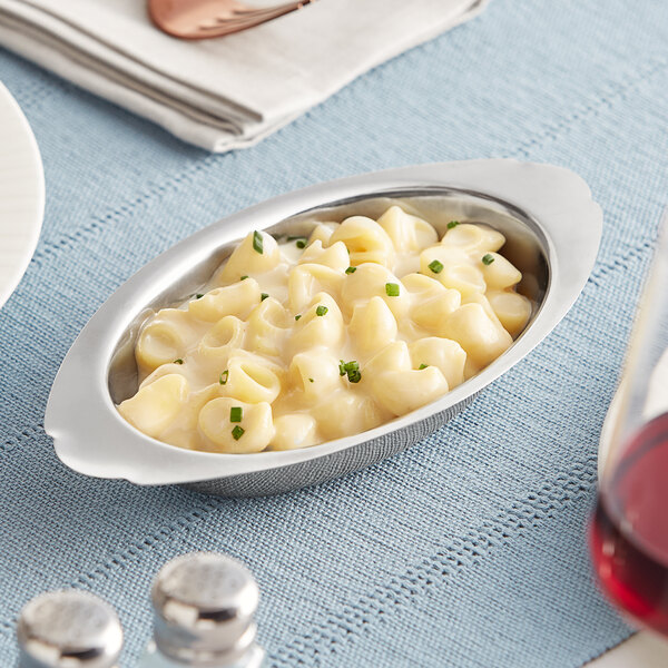 Choose a reliable product with this Choice 8 oz. stainless steel oval au gratin dish.