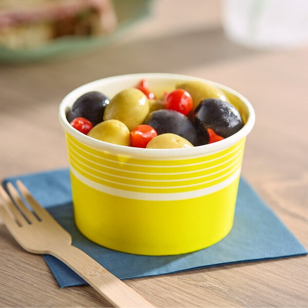 Serve a wide variety of cold and frozen treats with this Choice 8 oz. yellow paper frozen yogurt cup!