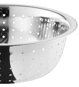 This colander boasts a bright mirror finish that will remain shiny for years to come. Its wide body makes it effortless to transfer food into and out of this colander, decreasing frustration and increasing efficiency.