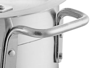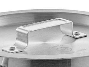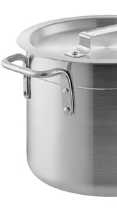 Made with 3003 aluminum, this stock pot and cover offer superior thermal conductivity. Aluminum also heats much quicker than its stainless steel counterparts for quick, efficient use in a busy kitchen. Measuring 4mm thick, its durable construction ensures long-lasting performance through washing, storage, and constant heating.
