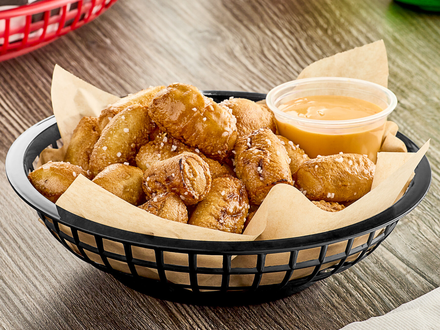 These plastic baskets are the perfect size for an appetizer or fries. They are super easy to clean and easily withstand the heat from hot foods.