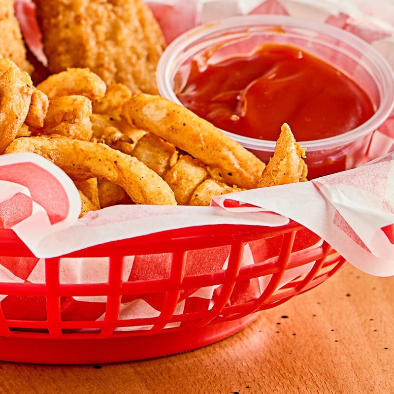These plastic baskets are the perfect size for an appetizer or fries. They are super easy to clean and easily withstand the heat from hot foods.