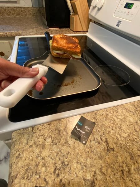 Very nice and sturdy turner. Its larger than I thought it would be, but its really good. It slides under the food easily and and it picks up so much in one try. Very well made.