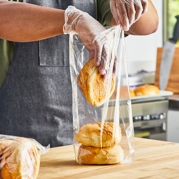 The high clarity of this bag makes it easy to identify the contents quickly. Whether you need to package baked goods, bread, or light weight produce, a secure closure can be created using a twist tie or tape. Plus, it can even be heat sealed for added security! This medium-duty plastic food bag is perfect for a variety of commercial applications, including restaurants, delis, and food storage facilities.