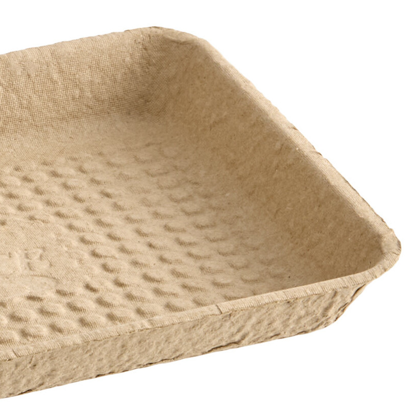 This tray is made from strong molded fiber and 100% recycled material! It's a great way to promote your green values to customers in comparison to foam or plastic alternatives. The strong design has a molded feel and texture that offers an easy grip.