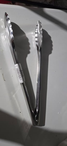 Sturdy heavy-duty tongs, staple in the kitchen.