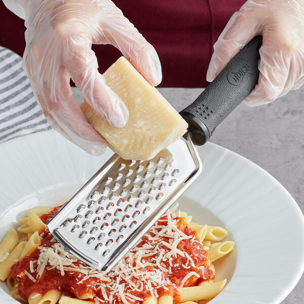 This grater creates consistently sized shreds that add flavor and color to your most popular dishes and drinks! Garnish your pasta dishes, salads, and soups with cheese with the help of this grater. Its versatility makes it a must-have tool for any commercial kitchen.