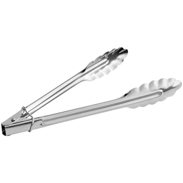 9 3/4" Stainless Steel Utility Tongs are sturdy and simple to use. They are able to hold heavy foods. They have a very easy lock system where you can even open/close the tongs with one hand.
