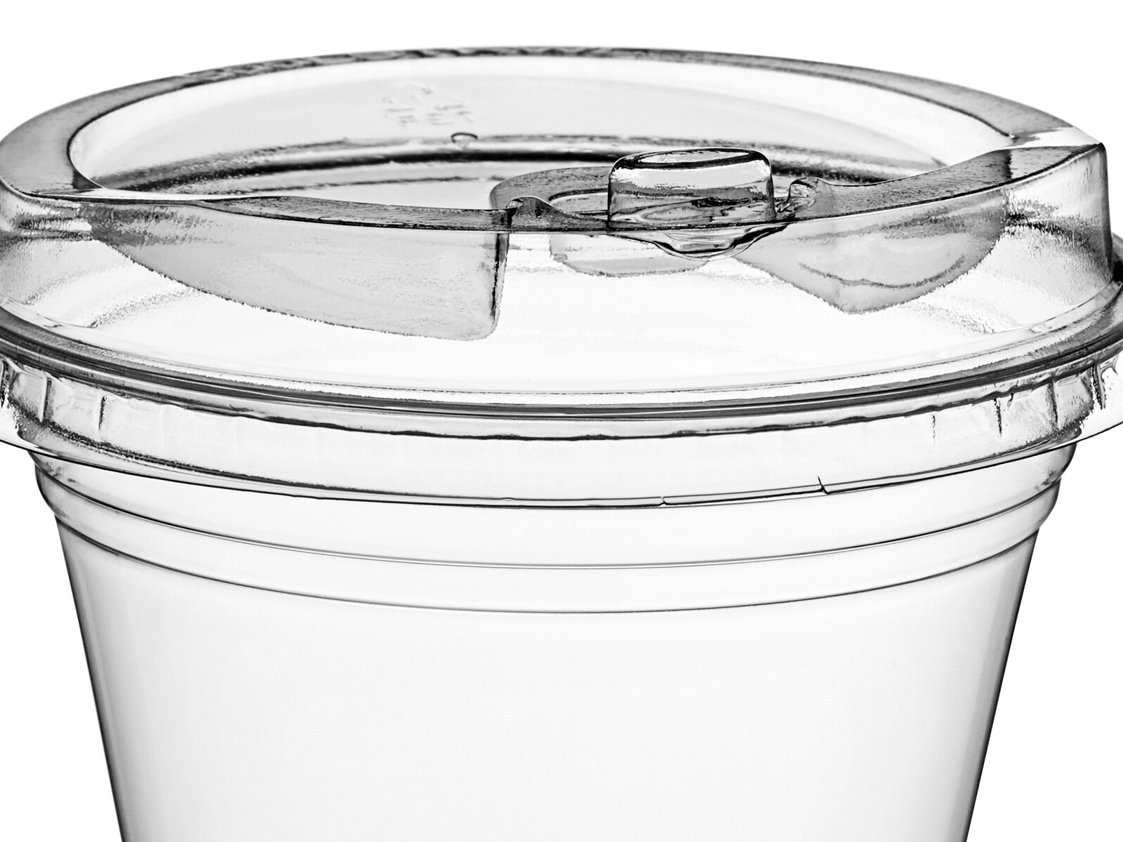 The included plastic lid features a sip-through hole, which allows your customers to enjoy their beverages without the need for a straw. Not only does this make this lid an eco-friendly addition to any establishment, but it makes it a cost-saving one, too! The tight seal helps to prevent leakage near the cup's rim, and it prevents spills from whipped cream, liquids, or ice, which may go above the rim of your cup.