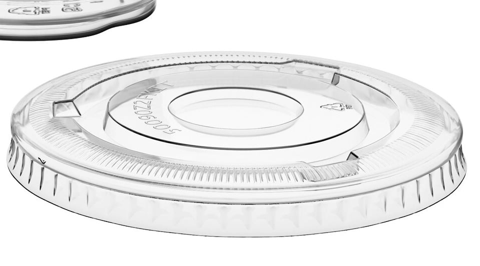This flat lid creates a tight seal when used with the compatible cups, keeping contents fresh. This, combined with its no hole design, prevents spills and leaks. It is made of recycled PET material making it an environmentally friendly choice, plus its flat shape allows stacking and saves space in storage and display merchandisers.