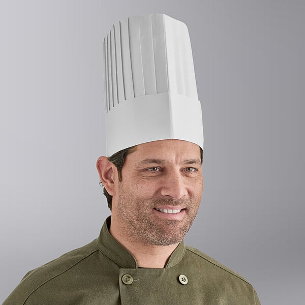 The crisp white color adds a touch of elegance to any culinary setting, making the hats ideal for upscale restaurants, catering events, and culinary schools. Economical and practical, these disposable chef hats are a must-have accessory for any professional kitchen.