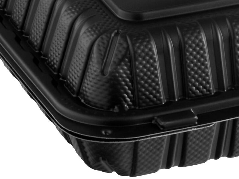 This take-out container is constructed of mineral-filled polypropylene that uses 40% less resin than comparable materials. This reduces the amount of waste produced during the manufacturing process, making this container an earth-friendly choice for your eco-conscious establishment!