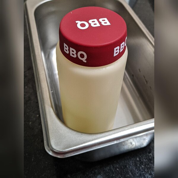 "BBQ" is clearly printed to communicate to your kitchen staff what condiment or ingredient is inside. By adding these convenient identification labels to your workflow, you'll save time searching for the right ingredients, reduce errors, and keep customers happy!