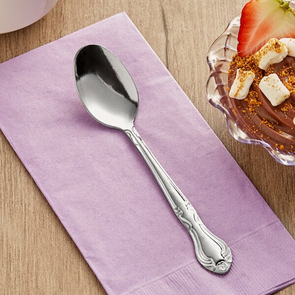 Give your guests sturdy, functional flatware with the Choice Bethany 6 1/8" 18/0 stainless steel teaspoon. This medium weight teaspoon features 18/0 stainless steel with a mirror polish finish that is excellent for anyone looking to enhance their casual dining area. Plus, its floral pattern is eye-catching and holds up to everyday use!