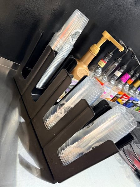 If you are looking to get rid of the cups and lids clutter and overcrowding on your workbench table or workbench fridge. Look no further that this lovely space saver Choice Black 4-Section Adjustable Slanted Countertop Cup and Lid Organizer. You will wonder how you never came across this adjustable unit.