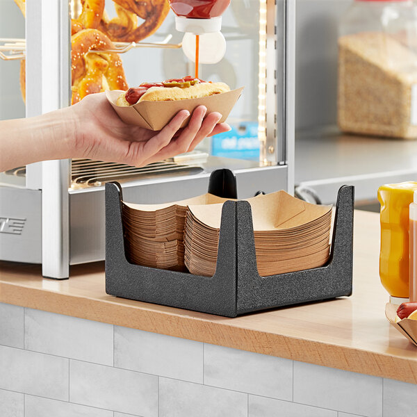 Keep your convenience store or concession stand countertop clean and organized with this Choice black countertop paper food tray organizer.
