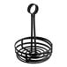 This Choice 6" x 9 1/2" black flat coil round wrought iron condiment caddy is perfect for holding salt and pepper shakers, as well as bottles of salad dressing, ketchup, and mustard. Use it to store your signature barbecue sauce or seasoning blends on your dining tables for easy access by your customers. With this wrought iron caddy, you'll be able to stay organized in style.