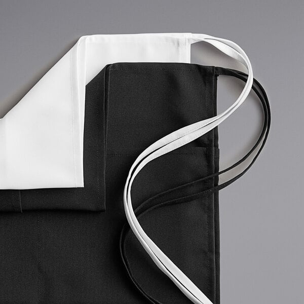 - Item #: 160waistfhcsChoice Black and White Chalk Stripe Poly-Cotton Standard Waist Apron with 3 Pockets - 12" x 26"