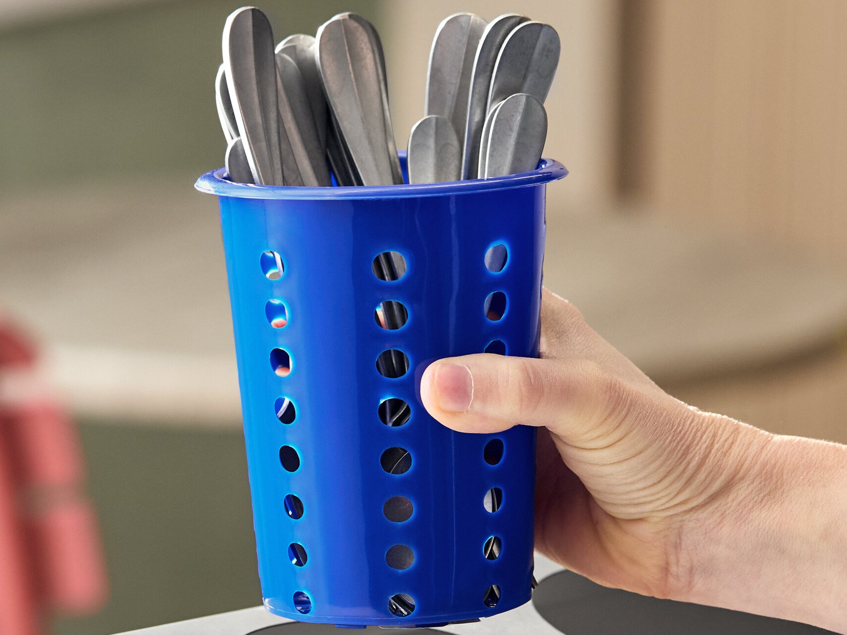 The cylinder's perforated design allows utensils to dry properly, preventing the accumulation of moisture that harbors bacteria. This cylinder's raised base also adds to its sanitary design. It elevates the utensils to prevent direct contact with countertops, so you can be sure your silverware stays clean from the dishwasher to the table.
