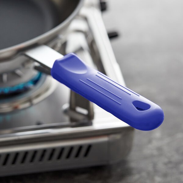 This pan handle sleeve is the ideal way to cook comfortably while protecting yourself from burns. With a heat resistance of up to 450 degrees Fahrenheit and a molded silicone construction, this sleeve is resistant to wear and tear, making them perfect for high-volume use in even the hottest commercial kitchens. The silicone of this handle is molded to perfectly accommodate your fingers for a comfortable grip each and every time, lessening fatigue. This sleeve slides on and off for easy attachment when cooking and removal for cleaning while helping you to create a color-coded operation in your kitchen to easily identify your mouthwatering creations.