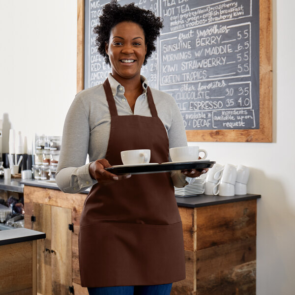LOVE these aprons. As a short woman (5 foot tall), this is MUCH-appreciated. Fits perfectly, and finally have an apron that doesn't look like a robe on me! Also very comfortable around the neck, and LOVE the pockets. A must!