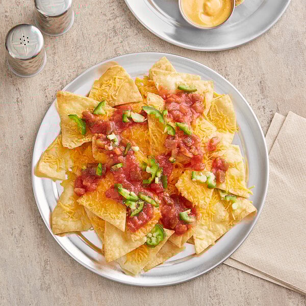 The wide rim design holds the pizza in place, which makes it perfect for fast-paced environments, ensuring the product reaches your guests and not the floor. Plus, it's excellent for conducting heat, which cooks pizzas evenly and quickly. This cost-efficient metal tray pairs with paper food wraps (sold separately) that vary the options of display when used for serving.