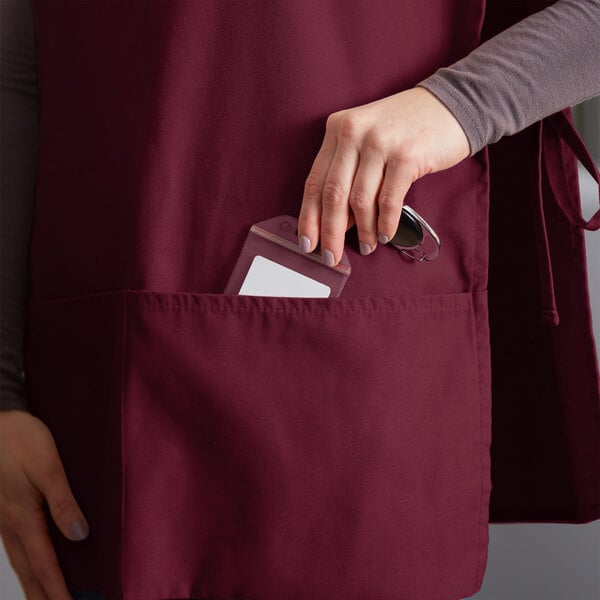 - Item #: 160bibfohbuChoice Burgundy Poly-Cotton Front of House Bib Apron with 3 Pockets - 25" x 28"