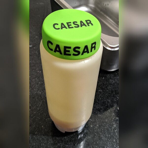 "Caesar" is clearly printed to communicate to your kitchen staff what condiment or ingredient is inside. By adding these convenient identification labels to your workflow, you'll save time searching for the right ingredients, reduce errors, and keep customers happy!