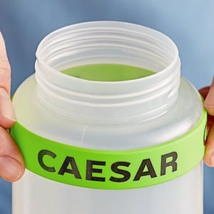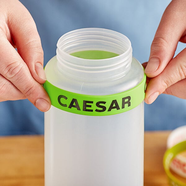 This label band fits 32 oz. standard and wide mouth bottles and has "Caesar" clearly printed to communicate to your kitchen staff what condiment or ingredient is inside. By adding these convenient identification labels to your workflow, you'll save time searching for the right ingredients, reduce errors, and keep customers happy!