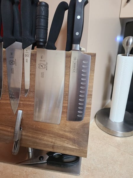 Made of professional grade, high carbon stainless steel, you can expect superior durability and rust resistance with each and every use! This essential kitchen tool features a thin, rectangular blade that is perfect for making fine cuts. It has a granton blade edge that breaks suction between the knife and food, allowing for effortless, fluid slicing. Plus, its wide design helps keep hands away from surfaces while cutting to prevent injury and ensure user safety.