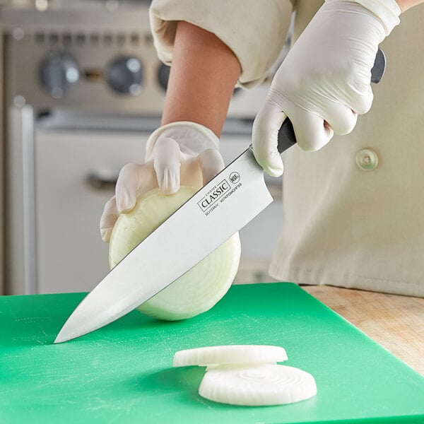 Boasting a durable, fade-resistant, and colorfast polyoxymethylene (POM) handle, this knife is perfect for long-term, sustained daily use in any high-volume establishment, including restaurants, culinary schools, and commercial kitchens. Versatile, affordable, and high quality, this Choice Classic chef knife is the ideal tool for making effortless and efficient precision cuts.