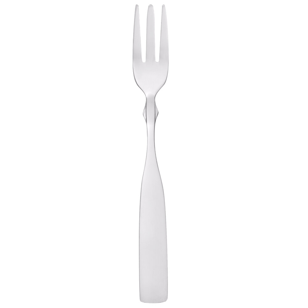 If you are looking for flatware that looks great but isn't too fancy, the Delmont line is the perfect choice.This cocktail fork features a strong, square design with a gently curved panel for a shape that is simple but attractive., and thanks to its subtlety it won't feel out of place in a casual dining atmosphere. Its polished finish offers a clean appearance, and is very much at home in your family restaurant, bar and grill, or cafe.