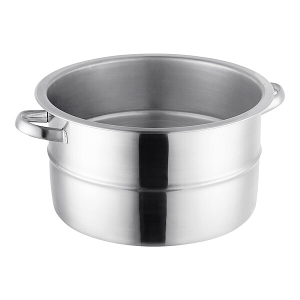 Designed specifically for your Choice Deluxe 14 qt. round soup chafer (sold separately), this food pan is a perfect fit! With its two sturdy side handles, transporting around your kitchen or to your buffet line is a breeze. Whether you need a replacement or want extra pans on hand, this durable 25 gauge stainless steel food pan is an excellent addition to your restaurant or catering business.