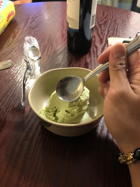 This stainless steel spoon is a good use for our ice cream. It doesn't bend nor does the handle get cold. It is also dish washer safe.