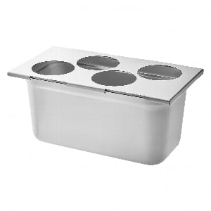 The (4) 3 1/4" machine-cut holes keep squeeze bottles containing sauces, dressings, or condiments securely in place. Bottles won't tip over or spill and cause a mess, so you'll save time not having to clean up spilled condiments and enjoy a cleaner, more organized prep station.