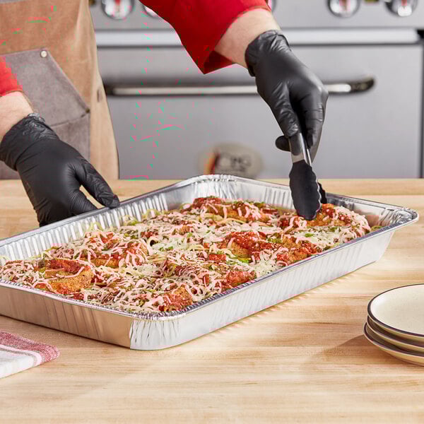 These Choice Full Size Heavy-Duty Foil Steam Table pans medium depth were not sturdy enough to use for hot food, even though they were described as "heavy duty". Will not purchase this brand again as we need something more sturdy to accommodate hot food items. These work well for salads and other light weight items. Customer service was very helpful when I called about this.