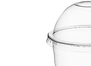 With the added dome lid, customers can take their favorite beverages with them wherever they go. Its dome shape creates a greater capacity for contents, making it perfect for holding elaborate drinks with whipped toppings. For peace of mind and worry-free transportation, this lid has a secure and tight fit. It is also made of recycled PET material making it an environmentally friendly choice.