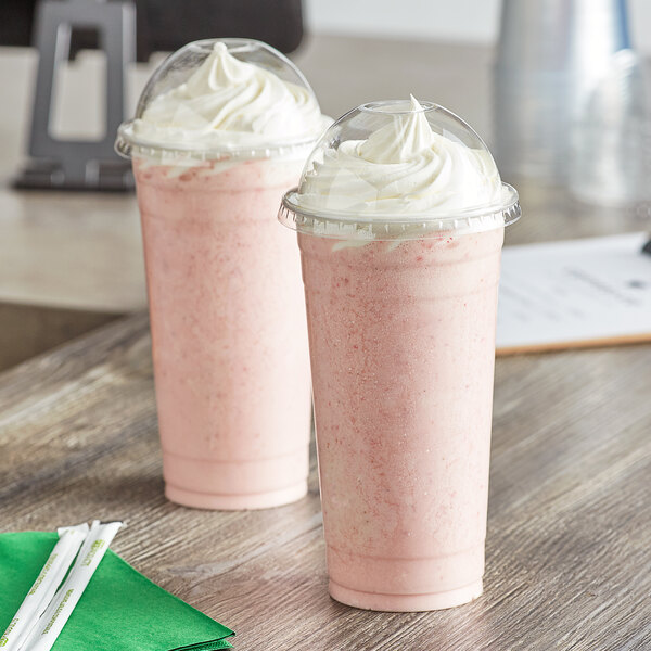 Beautifully showcase all of your on-the-go beverages with this Choice Heavy Duty 24 oz. heavy weight clear PET plastic cold cup with dome lid!