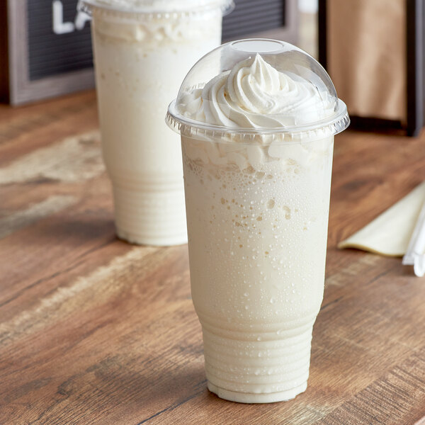 From milkshakes and iced coffee, to smoothies and slushies, this disposable plastic cup will create an eye-catching presentation for any refreshment. A must-have for any kiosk, concession stand, fast food restaurant, or to-go establishment, this PET plastic cold cup with dome lid with no hole is the perfect addition to your venue.